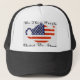 We The People United We Stand trucker hat # 100% polyester foam front has a wide area that features design # 100% nylon mesh back keeps you cool # 8 row stitching on the visor # Adjustable from 17" to 24"