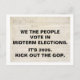 Design background: The background design is the first page of the US Constitution, with We the People at the top and Article 1 (Congress). The text in black sans serif all caps font reads "We the People vote in midterm elections. It's 2026. Kick out the GOP."