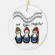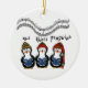 Three penguins singing holiday carols on We Three Penguins keepsake holiday ornaments.