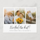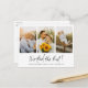 This simple, stylish multi photo collage wedding elopement announcement postcard template features your three favourite photos with 'We tied the knot!' in black and your names, wedding date and wedding locale below. The 'We tied the knot!' script can't be altered, but you might choose to change the font, punctuation or colour used for some of the other text elements of this design on the front and/or back. The details text on the front below the script is a very dark grey that's mostly black by default, but you might want to change this to another colour. You might also choose to delete something or change a text field entirely with a different message. For example, you might decide to change the names format to include your last name, or to a Mr. and Mrs.(last name) format, etc. Or you might delete the sample wedding locale without replacing it with your own, for an even simpler look on the front. On both sides we've made the background transparent to let the colour of the paper simply serve as the base tone. You can edit this and pick a colour if you prefer. We've put some placeholder text on the back for you to delete and replace with your own message, with or without your names, if you want to sign by hand when you get the postcards. But you might also simply choose to delete our placeholder text and leave the message space on back entirely blank so that you can write a message by hand on each card and sign your names. The colour of the text on back is a grey tone, but you can change the colour, size or font to suit your style. The default paper type, matte, has a soft warmth to it and resists smudging, so it's a great choice for writing your own message, if you choose to do that. You can edit this and choose semi-gloss instead. In any case please do remember that there's placeholder text on the back as well as on the front and to delete all of our sample/placeholder text on both sides of the card, as well as our sample photos! Use zazzle's intuitive editing tools, your photos and your inspiration and make this simply charming photo collage wedding elopement announcement postcard uniquely yours!