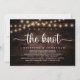 Mark the beginning of your forever with rustic elegance using our cottage and village string lights dark brown wood background themed, wedding elopement celebration invitation card, "We tied the knot". Perfect for couples extending their joyous occasion, this invitation exudes sophistication with a hint of playfulness, setting the stage for a memorable event. Adorned with a timeless modern script design theme, it adds a touch of refined charm to your festivities. Crafted by TeeshaDerrick, this invitation promises to beautifully capture your love story.