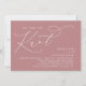 Mark the beginning of your forever with elegance using our contemporary aesthetic dusty rose pink theme wedding elopement celebration invitation card, "We tied the knot". Perfect for couples extending their joyous occasion, this invitation exudes sophistication with a hint of playfulness, setting the stage for a memorable event. Adorned with a timeless modern script design theme, it adds a touch of refined charm to your festivities. Crafted by TeeshaDerrick, this invitation promises to beautifully capture your love story.