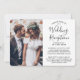 Invite family and friends to a simply elegant wedding reception with this stylish modern "we tied the knot" 4 photo collage invitation. All wording is simple to personalise for any reception only celebration, including a post elopement party, vow renewal ceremony, sequel wedding, 1st anniversary, cocktail hour or dinner party. Customise it to include the details of your choice, such as marriage date, dress code, rsvp, website, etc. (IMAGE PLACEMENT TIP: An easy way to centre a photo exactly how you want is to crop it before uploading to the Zazzle website.) The modern minimalist black and white design features four pictures of the newlywed couple, trendy handwritten script calligraphy, and chic typewriter style typography. Whether or not you eloped due to the covid pandemic or downsized to a smaller, more intimate minimony or micro wedding, the happily ever after party can still get started. Congratulations to the bride and groom!
