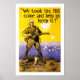 Australian World War I Poster by Harry T. Weston, 1915, depicting a soldier on a hiltop above a naval battle, probably referencing the Battle of Gallipoli where many Australian lives were lost.