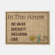 Welcome guests with a message of unity and kindness with this "In This House – We Value Diversity, Inclusion, Love" doormat. Designed with a faux natural burlap background, this doormat blends rustic charm with a powerful statement of belonging. In a time of division, this doormat allows you to proudly display your commitment to inclusivity and acceptance, making it clear where your home stands. Perfect for entryways, porches, or patios, this meaningful and stylish mat is a great way to spread positivity while keeping your space clean. Let every visitor know that love and acceptance live here.