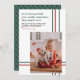 The modern minimalist design is accented by classic holiday colours—deep greens, vibrant reds, and crisp white borders. The layout is clean, featuring a festive, plaid-inspired geometric pattern on the reverse side. This card is designed to showcase your favourite family photo, framed by subtle stripes, adding a contemporary twist to traditional holiday aesthetics.