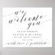 We welcome you Elegant Calligraphy Script Wedding Welcome Sign with love and gratitude, in beautiful flowing fancy letters and your personalised names, location, and date. A stylish yet simple formal design in black and white or any background colour you choose. Just click the customise further link, shown under the text personalisation area on the right, and choose your custom colour background. This sign poster template makes it fast and easy to create stunning additions to your wedding decor. Signs can be enlarged, there are many sizes to choose from, as well as options for custom framing and matting. Welcome to our wedding custom signage.
