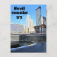 9/11 Memorial Pool with buildings in the background, with message: "We will remember. 9/ll"