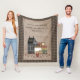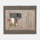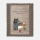 This rustic fleece blanket is the perfect touch to your country home. There's a grey saltbox colonial house with a star in the peak, a canning jar filled with cinnamon rolls, a stack of primitive boxes, a gingerbread man, a punched tin heart picture and lots of red pip berry vines. The background is done in a warm and cosy faux linen fabric with a black and tan check border. You can bring some spirituality into your home with this blanket which reads "As for me and my house, we will serve the Lord", a quote from the Book of Joshua, 24:15. Several other coordinating designs are available in my shop, as well as matching pillows.