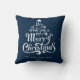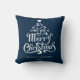 We wish you a Merry Christmas personalised Throw Pillow. A festive Christmas graphic Pillow featuring a classic message in a fun Christmas tree shape on a red background.