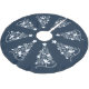 Blue and White Christmas Tree skirt decorated with stylised christmas trees, made up of stars and snowflakes. We wish you a merry christmas is printed underneath each tree. Please browse my store for alternative colours or click "customise further" to choose your own colours.