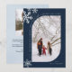 Stand out this holiday season with a one of a kind curved edge photo Christmas card. The greeting wraps around two sides of your photo and reads "We wish you a Merry Christmas and a Happy New Year! The design features white snowflake accents and a navy blue background. Lots of room on back to add a longer holiday message and an additional photo.
