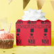 Holiday wrapping paper with black text that reads We Wish You a Merry Christmas in the shape of a Christmas tree! You can customise the red background to be any colour you want.