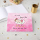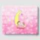 Sweet pink girl's baby shower with a hand drawn baby sleeping peacefully on the moon and clouds with a pink stars background.