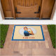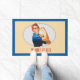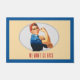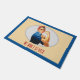 Women's Rights protest front door mat features full colour vintage style Rosie the Riveter graphic and "we won't go back" text .