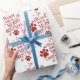 This wrapping paper features a playful “We Woof You a Merry Christmas” pattern with scattered paw prints and simple snowflakes in a warm red tone on a white background. It’s a fun choice for pet lovers, groomers, rescues, dog-themed holiday gifts, or festive packaging with a little humor.