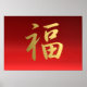 Wealth Chinese Calligraphy Symbol in Red and Gold Poster