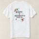 This t-shirt design features a flat vector design with a minimalistic geometric pattern. The design is simple and clean, with a modern aesthetic. The phrase "Wealth is Possibility's Foundation" is centred in the design, and the text is in multi colour. The design is printed on a white t-shirt.