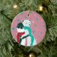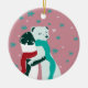 Weasel hugs in Christmas in Pink Ceramic Tree Decoration