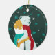 Weasel hugs in Christmas Teal Ceramic Tree Decoration