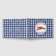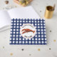 Lobster illustration on front cover inside circle with names and date. Background is weathered blue gingham.