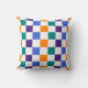 Weathered Chequerboard Orange, Teal, Blue, Purple Cushion