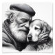 A touching black and white pencil illustration depicting an elderly gentleman in a beret sharing a quiet moment with his loyal Golden Retriever. The artwork showcases incredible detail in both the weathered features of the man and the soft fur of his canine companion, capturing the deep emotional connection between human and pet. Perfect for dog lovers, pet memorial art, or anyone who appreciates the beauty of lifelong companionship.