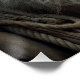An old seaman with a long white beard and deep wrinkles gazes up at a woman's shape dancing from his smoking pipe