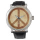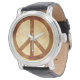 Wrist watches are back in style - so are peace signs. Why not combine the two so you can be a punctual hippy :). Rustic classic weathered peace sign design with genuine leather strap. Other features: