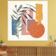 This simple and elegant boho influenced design is weathered and distressed shapes with two plan t stalks in earthy shades of orange, brown, green, and blue.