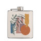 This simple and elegant boho influenced design is weathered and distressed shapes with two plan t stalks in earthy shades of orange, brown, green, and blue.