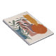 This simple and elegant boho influenced design is weathered and distressed shapes with two plan t stalks in earthy shades of orange, brown, green, and blue.