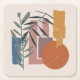 This simple and elegant boho influenced design is weathered and distressed shapes with two plan t stalks in earthy shades of orange, brown, green, and blue.