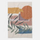 This simple and elegant boho influenced design is weathered and distressed shapes with two plan t stalks in earthy shades of orange, brown, green, and blue.