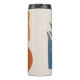 This simple and elegant boho influenced design is weathered and distressed shapes with two plan t stalks in earthy shades of orange, brown, green, and blue.