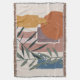 This simple and elegant boho influenced design is weathered and distressed shapes with two plan t stalks in earthy shades of orange, brown, green, and blue.