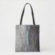 The wood piling in the original photograph by MaeFlowers on this Tote Bag sits along the dock of a canal leading to the Gulf of Mexico The photo is a closeup showing the weathered wood with all its grain pattern, cracks and other details of life along the waterfront. The colours are muted bluish greys and greenish browns. There is a line of text in light aqua blue which can be personalised, or deleted if you prefer.