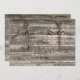 A modern day fun wedding invitation that reads, " You are cordially invited to the wedding of NAME & NAME. LOCATION DATE TIME Reception immediately to follow." The background image is of a rustic weathered wooden door with unique vintage door hinges. Find more matching wedding supplies in the Weathered Wood collection.