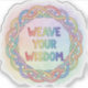 This design features the phrase "WEAVE YOUR WISDOM." prominently centered within a beautiful, circular wreath of braided material (like colorful thread or strands).