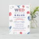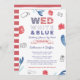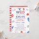 Wed [Red] White and Blue wedding shower invitation design for couples who for whatever reason have to celebrate at a distance! A fun Invitation design, particularly suitable for an event around a national holiday eg 4th July.
