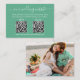 Modern Minimalist Simple Wedding Website Enclosure Card with your QR Code. Add your 2 QR's - RSVP and Wedding Details. Stylish Calligraphy Script. Photo Back. Neo Mint Green