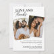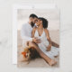 Elegant wedding thank you card featuring a simple white background, 2 photos on the front of the newlyweds, a personalised appreciation message, your names, wedding date, and location. On the reverse is a full printed photo of the happy couple.