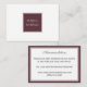Share wedding accommodations and other details with your guests in an elegant and economical way using these personalised business cards. The front of the card has the bride and groom's names presented in an elegant logo style surrounded by a rich marsala red burgundy square frame. Side 2 of the card has your detailed information you wish to provide your guests. Use them as an enclosure with your wedding invitations. These cards come in packs of 100 and discounts are applied when ordering multiple packs.