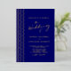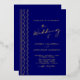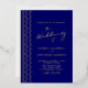 All in One Modern Boho African Mudcloth Pattern Calligraphy Gold Foil Wedding Invitation... Inspired by African mudcloth textile designs, our unique "All in One" wedding invitation features a dramatic tribal pattern in real gold foil on a navy blue background next to your invitation text in modern calligraphy script and elegant serif typography. The back of the invitation contains all of the details you would typically see on separate cards in the wedding packet. All example text (except for the graphic calligraphy elements) can be easily revised with your own information on the personalisation template.