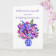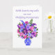 A pretty Wedding Anniversary Card for a Wife, with a vase of pink and blue flowers, from a handpainted paper collage by Judy Adamson. If you would like the front cover text changed in any way (eg a different age, person or language), please contact me through my store and I'll be happy to do it straight away.