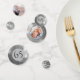 Decorate any wedding anniversary celebration with these fun photo editable confetti pieces personalised with the couple's names and wedding date and the title CELEBRATING # YEARS on a silver bokeh background (the sample shows a 65th anniversary. The text is fully editable to change to any year anniversary.