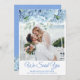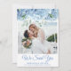 Blue periwinkle hydrangeas watercolor floral wedding announcement card. Customise names, dates, and information.