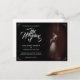 Wedding announcement with the image of a dreamy bride leaning against a wall with a bouquet of white flowers in the penumbra - classic style.
