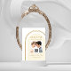 This elegant wedding response card features a place for your QR code so that guests can easily rsvp on your wedding website. The front features a beautiful faux gold arch with a square photo and a modern design. The back is one full photo for your engagement photo or other favourite picture.