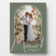 A special keepsake features your wedding photo in an elegant arch design with the text "Married" in chic text along with your names and wedding date on a sage green background. Beautiful gift for your family and a fabulous memory to display in your own home. BACKGROUND colour can be changed! MORE COLORS in our collection.